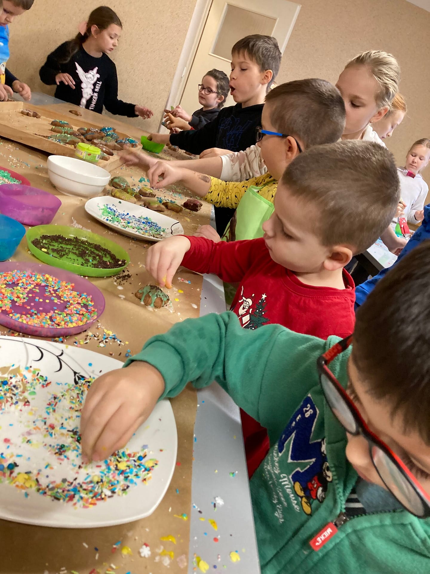 W piątek, 24. listopada, młodzież z MDP spotkała się na pieczeniu pierników, byśmy mogli spotkać się w sobotę na ich wspólnym dekorowaniu. Działania podzielone zostały na dwie grupy: pierwsza – przedszkolaki z Akademii Młodego Strażaka oraz Dziecięcej Drużyny Pożarniczej oraz druga – młodzież z Młodzieżowej Drużyny Pożarniczej. Było wesoło, zabawnie, a żeby poczuć klimat, w tle brzmiała świąteczna muzyka.