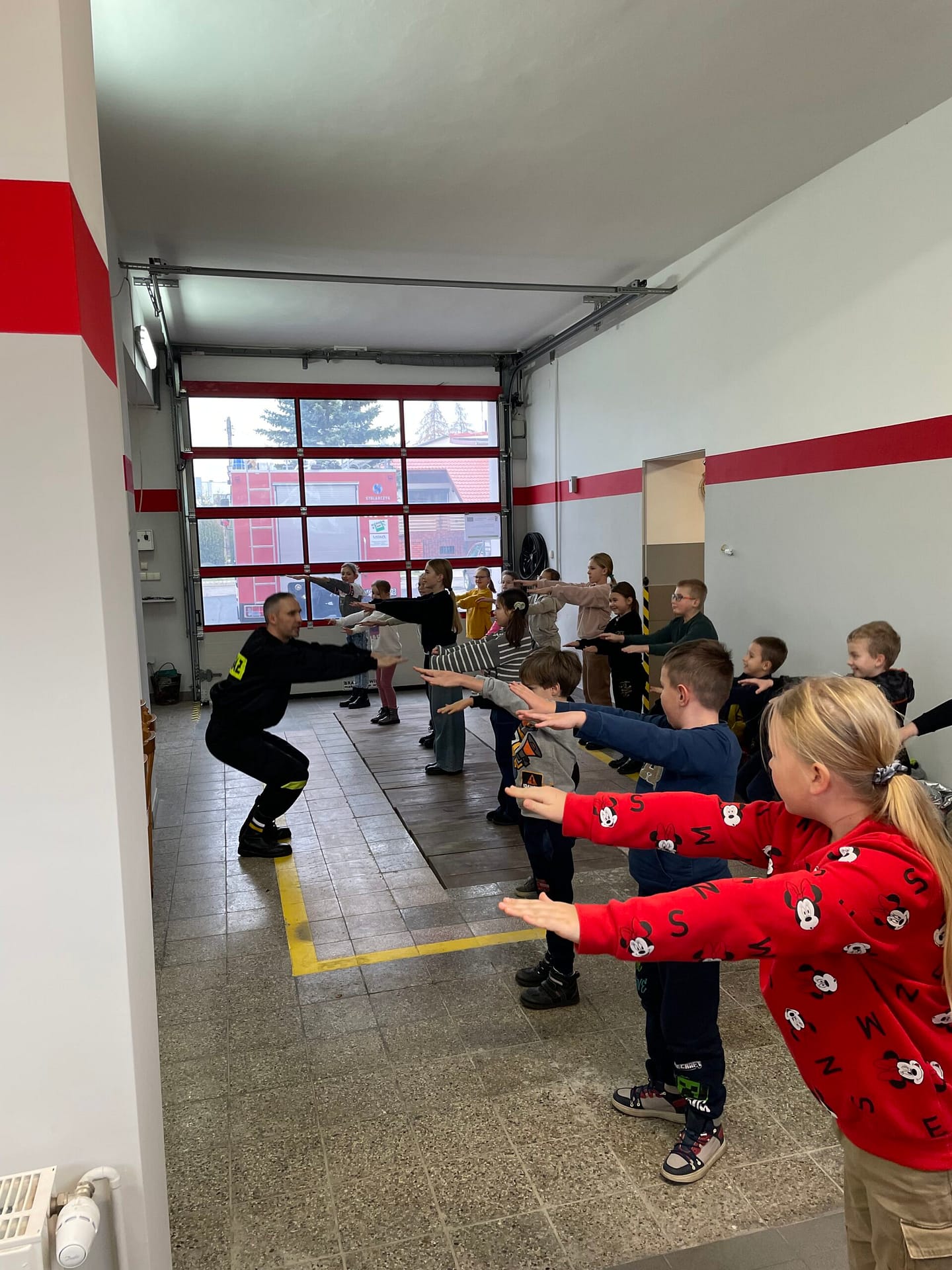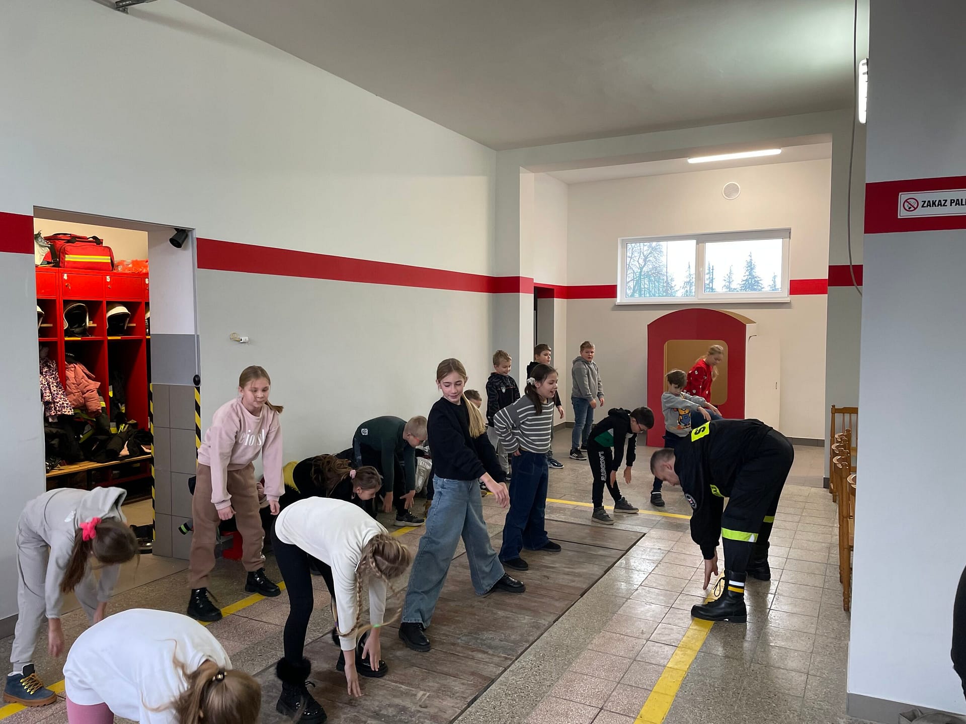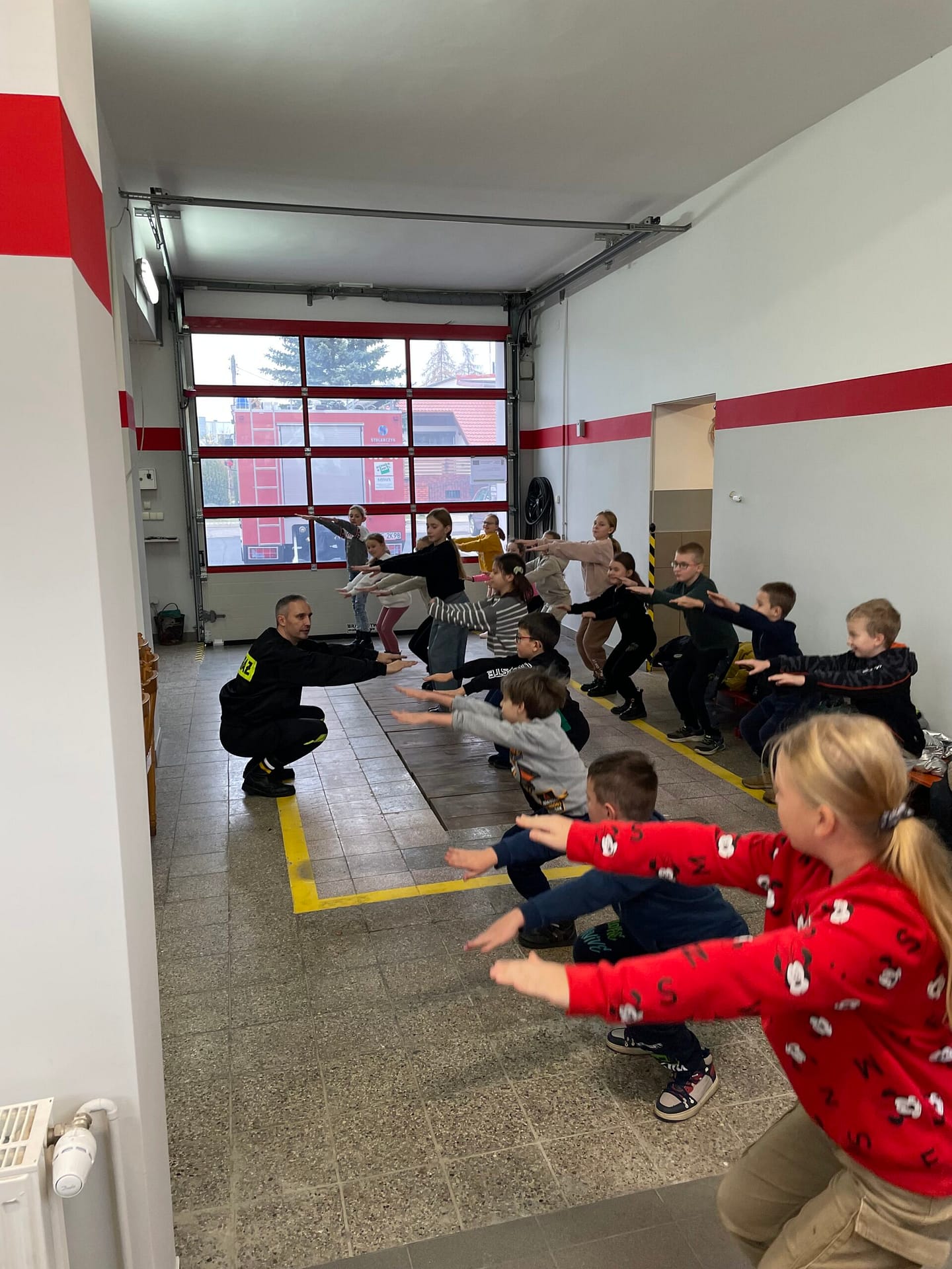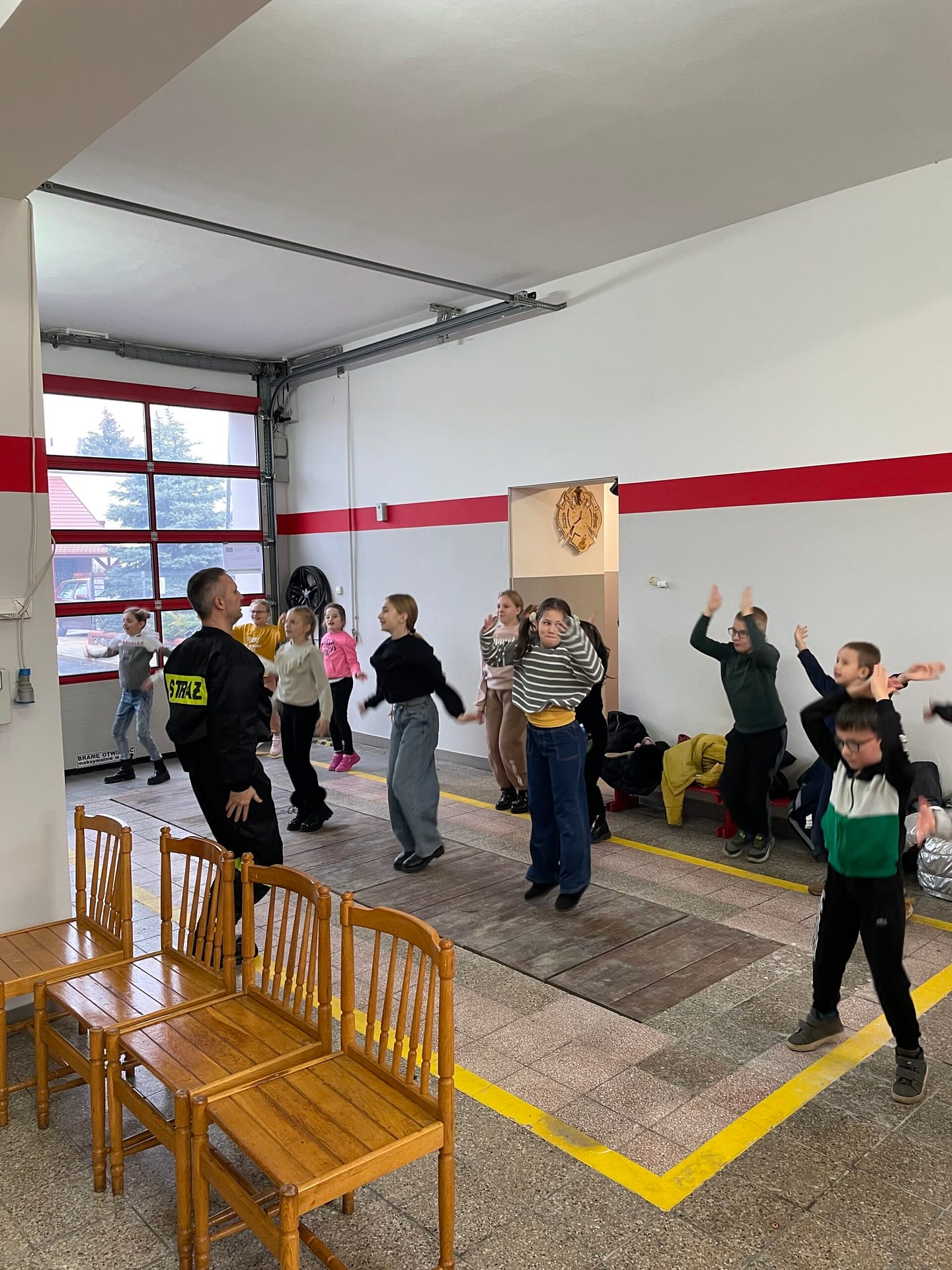 Na początek po krótkiej rozgrzewce dla najmłodszych nastąpiło zaznajomienie się z naszą „nową” remizą. Najmłodsze dzieci z AMS oraz DDP w ramach zajęć miały gry i zabawy ze sprzętem strażackim, dla dzieci z DDP oraz młodzieży z MDP przygotowaliśmy krótkie przypomnienie z wiedzy o drobnym sprzęcie wykorzystywanym w działaniach.