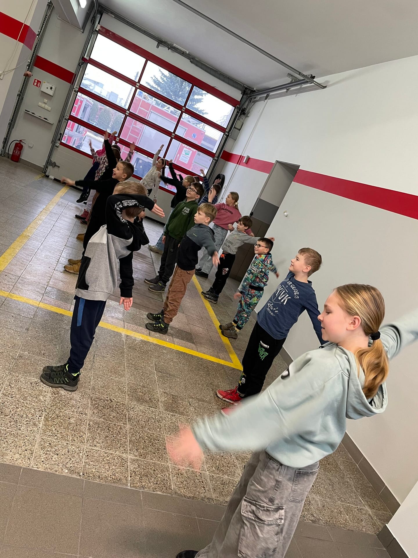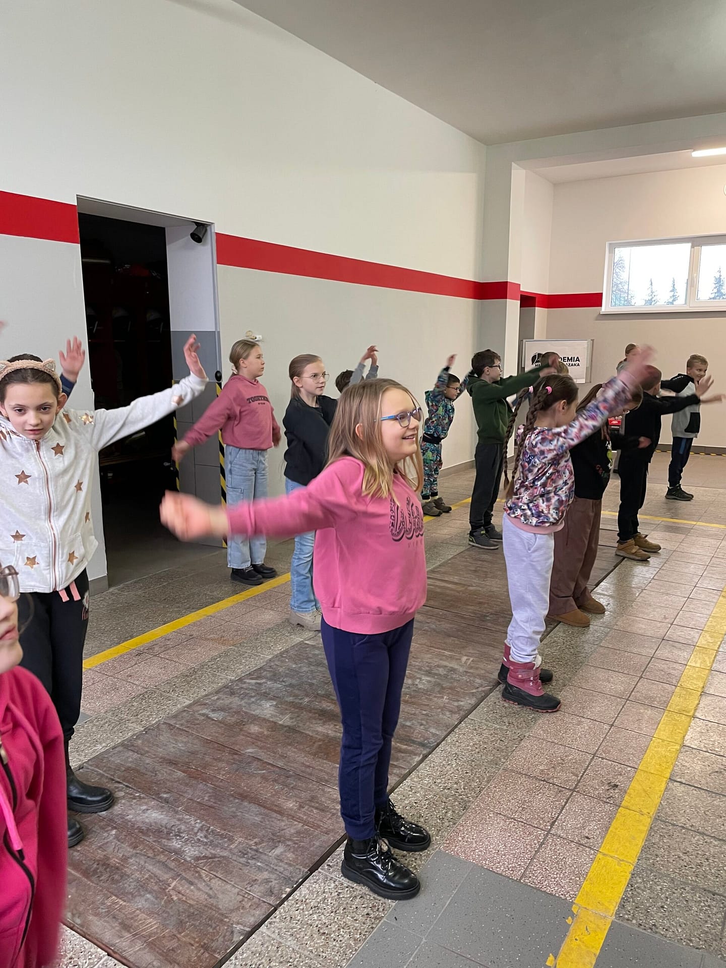 Spotkanie dzieci w ramach DDP rozpoczęliśmy od rozgrzewki oraz przypomnienia i zapoznania z nowym sprzętem – jako przygotowanie do Turnieju Wiedzy Pożarniczej.