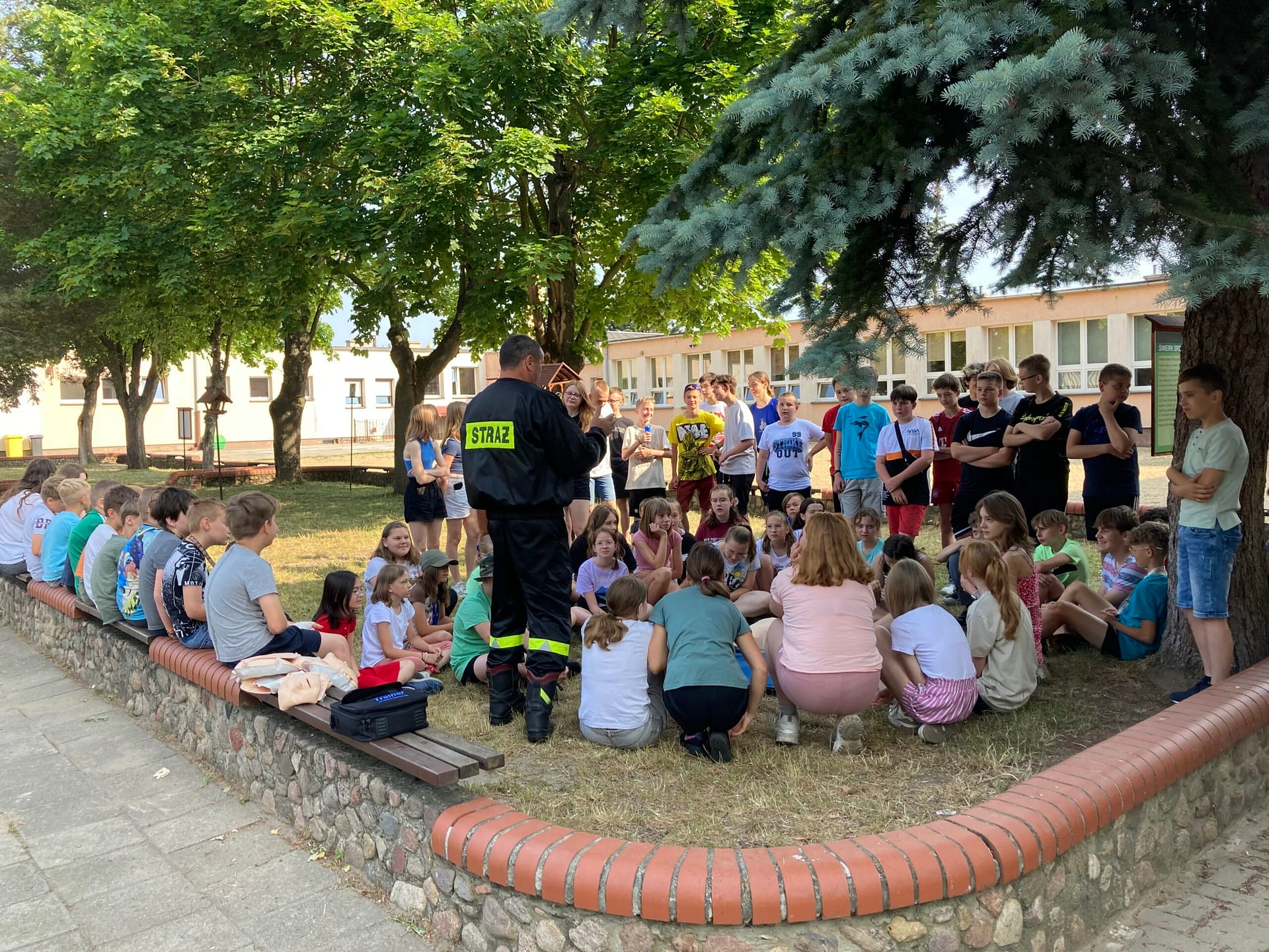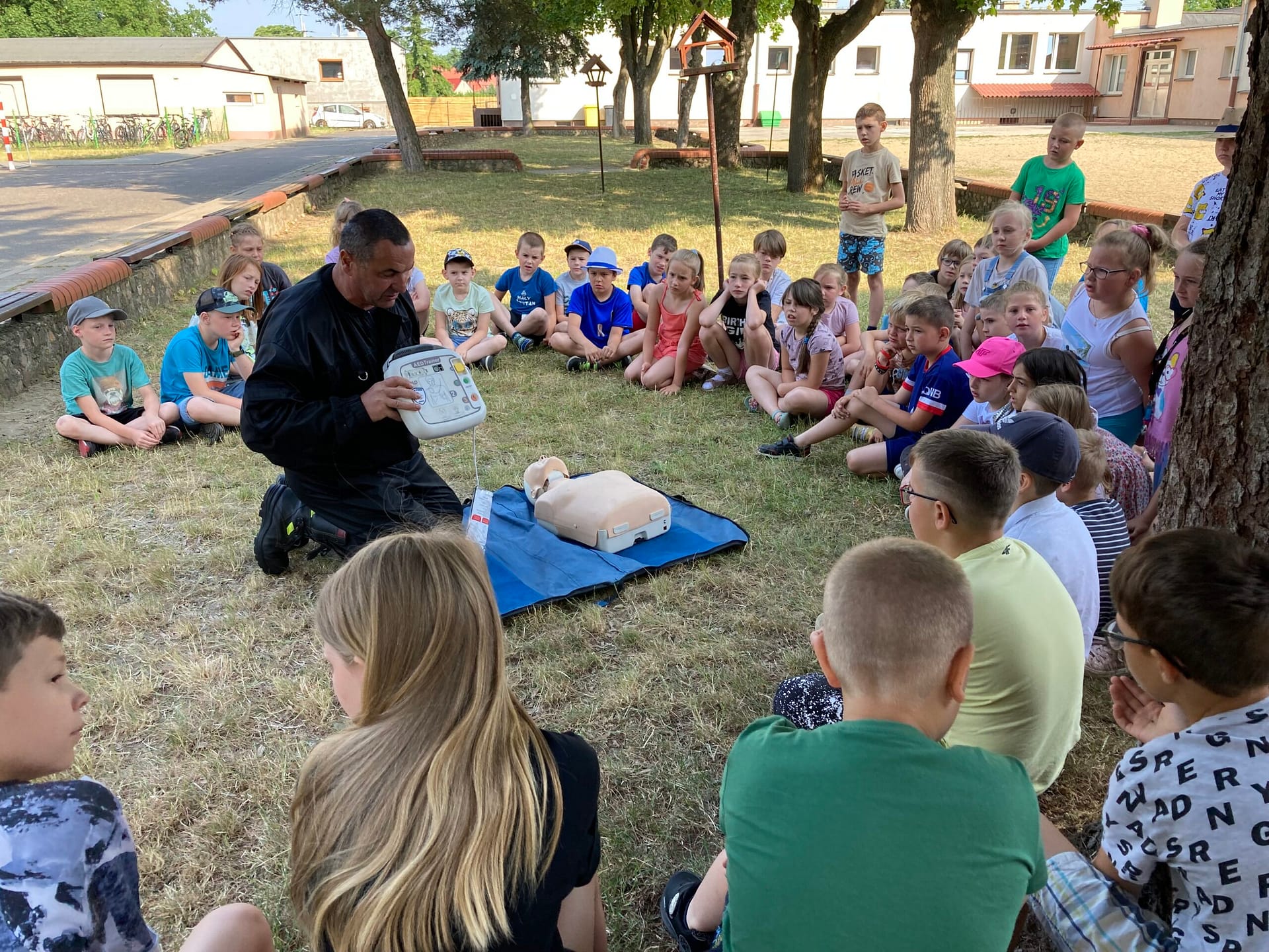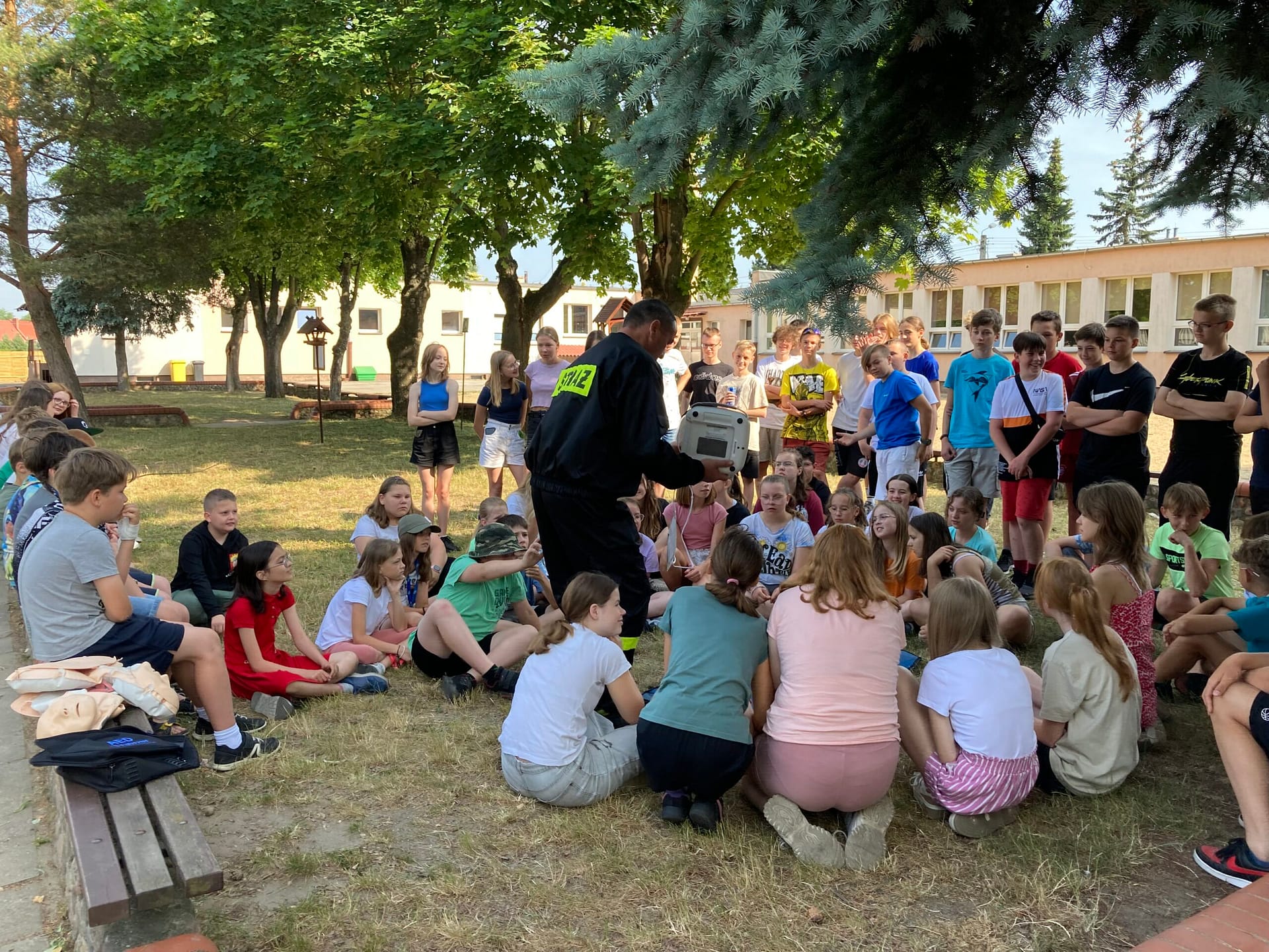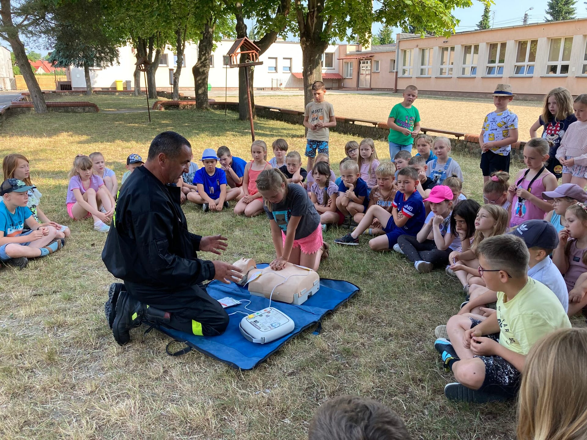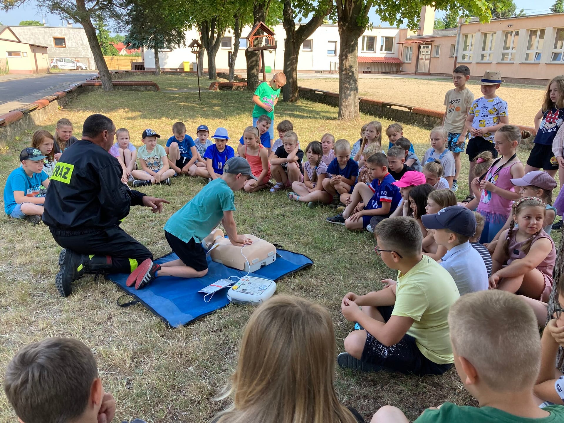 W ramach spotkania młodzież poznawała zasady udzielania pierwszej pomocy oraz zapoznawała się ze sposobem korzystania z urządzenia AED. Przy okazji rozpoczynających się wakacji przypomnieliśmy również o zasadach bezpiecznej zabawy nad wodą.